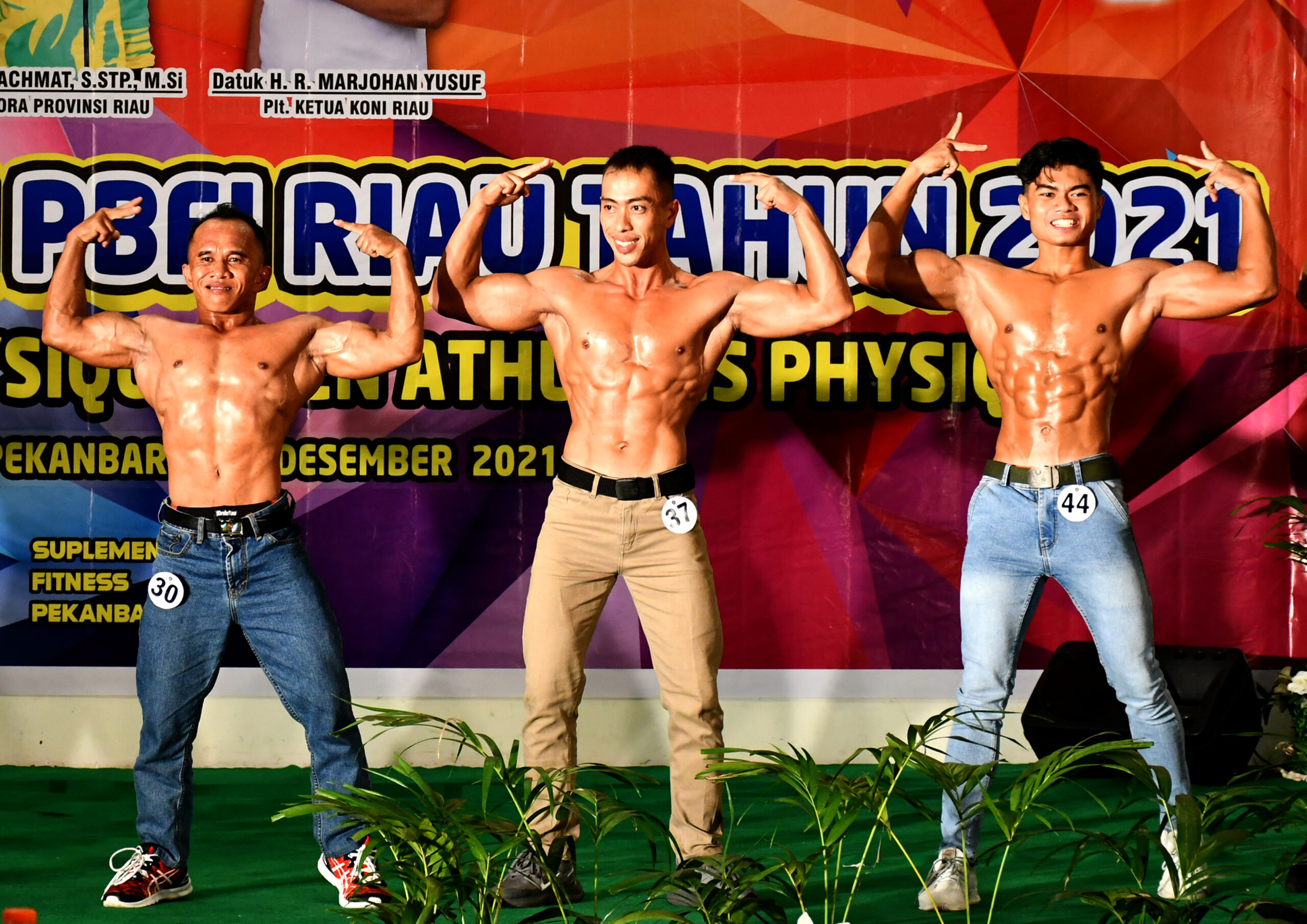 3. Praka Mas Riko Gandhi Prihanggara meraih peringkat 5 (kelas Men Sports Physique Kejurda PBFI Riau)