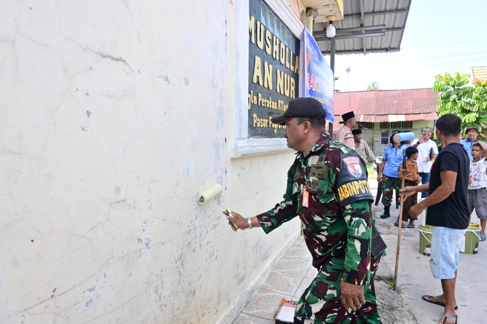 Kegiatan yang menjadi program unggulan Dinas Teritorial Lanud RSN ini dilakukan secara langsung bersama masyarakat, dengan melibatkan Bintara Pembina Teritorial (Babinter) sebagai ujung tombak komunikasi di wilayah sekitar pangkalan. Personel Lanud RSN bersama warga tampak bahu-membahu membersihkan area sekitar musholla, mengecat dinding, hingga memperbaiki beberapa sarana ibadah untuk mendukung kenyamanan jamaah. Suasana gotong royong yang penuh keakraban mencerminkan kedekatan antara prajurit TNI AU dengan masyarakat setempat.
