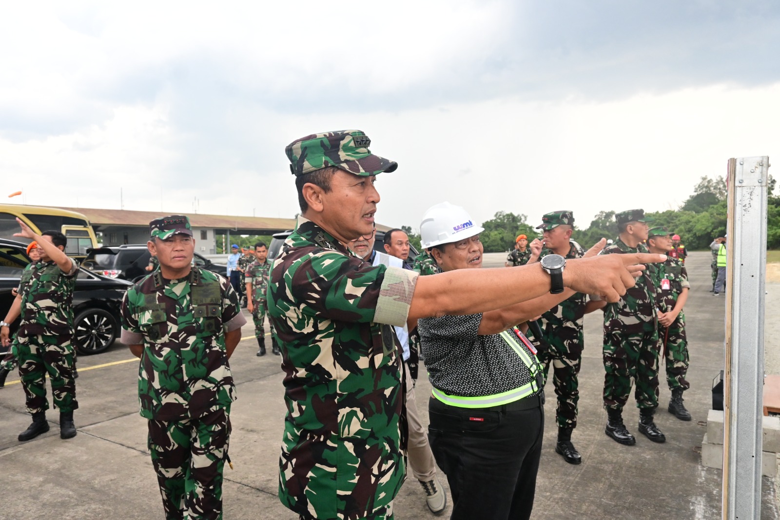 Setelah paparan, Kasau beserta rombongan melakukan peninjauan langsung ke sejumlah lokasi pembangunan. Pilot building dan hanggar Skadron Udara 12 menjadi titik pertama yang dikunjungi, dilanjutkan dengan pengecekan area taxiway dan jet blast deflector. Kasau juga meninjau Rafale Training Center dan simulator yang akan menjadi pusat pelatihan para penerbang, memastikan kesiapan sumber daya manusia sejalan dengan hadirnya pesawat tempur canggih tersebut.