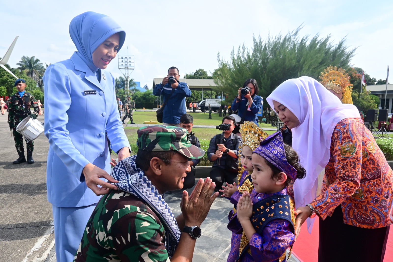 Kedatangan Kasau disambut hangat oleh Komandan Lanud Roesmin Nurjadin Marsma TNI Abdul Haris, M.M.Pol., M.M.O.A.S., didampingi Ketua PIA Ardhya Garini Cabang 12/Daerah I Lanud RSN, Ny. Astrid Abdul Haris. Turut hadir pula pejabat Forkopimda Provinsi Riau, serta seluruh pejabat Lanud RSN dan Insub di Apron Base Ops. Sambutan hangat ini mencerminkan sinergi yang terjalin baik antara TNI AU dan pemerintah daerah dalam mendukung kesiapan operasional alutsista baru.