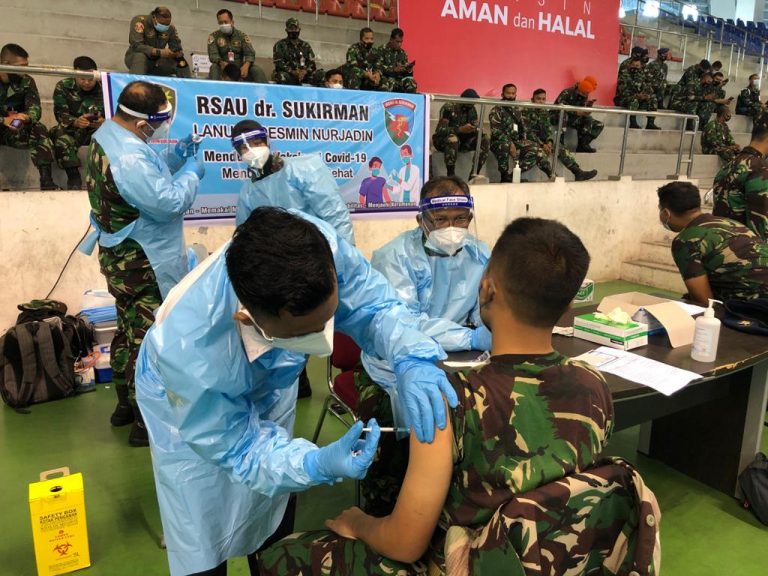 Rumah Sakit dr. Sukirman Lanud Roesmin Nurjadin bantu Pemerintah Daerah Pekanbaru dalam kegiatan vaksinasi Covid-19 terhadap warga, Pekanbaru, Selasa (15/6/21).