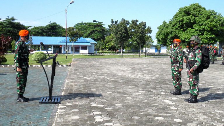 Komandan Batalyon Komando 462 Paskhas Letkol Pas Yoseph M. Purba, MAvnMgt, MMS, pcsc pimpin apel pembukaan kegiatan Uji Siap Tempur
