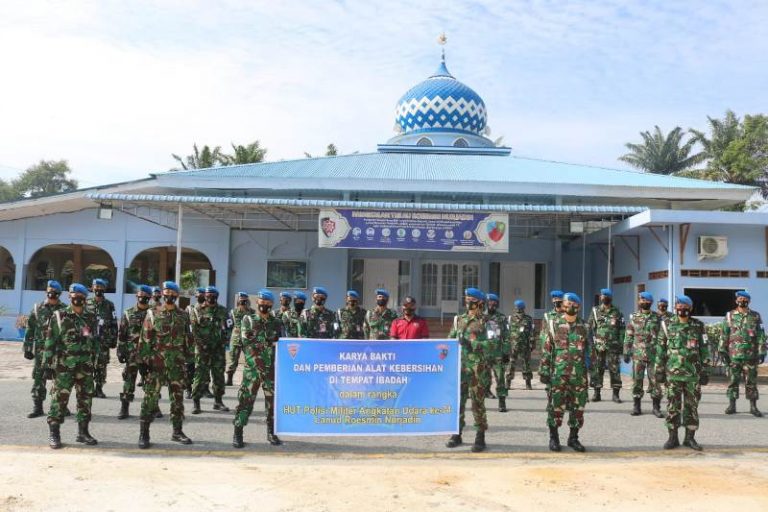 Satuan Polisi Militer (Satpom) Lanud Roesmin Nurjadin melakukan pembersihan rumah ibadah seperti Masjid Amrullah dan Gereja Eben Haezer Lanud Roesmin