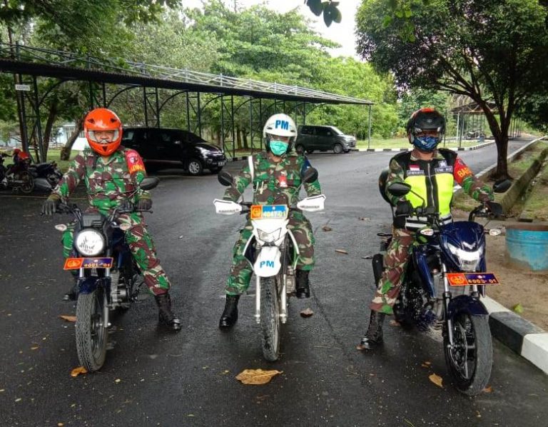 Bintara Pembina Angkasa (Babinsa) TNI AU di Lanud Roesmin Nurjadin laksanakan patroli pengamanan aset bersama personel Satpomau untuk memantau lingkungan